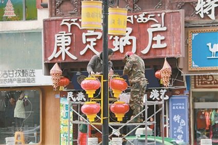 春節(jié)的腳步越來(lái)越近,最近幾天,康定市主要街道、河畔、公園、廣場(chǎng)處處懸掛起燈籠、燈帶等裝飾品,充滿(mǎn)濃濃的節(jié)日氣息。