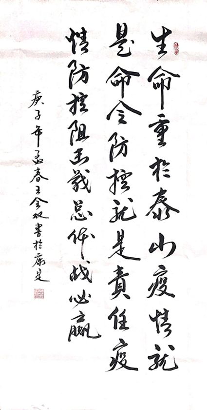值此舉國上下奮力打贏這場疫情防控阻擊戰(zhàn)的關(guān)鍵時(shí)刻, 甘孜州書法家協(xié)會迅速行動,踴躍創(chuàng)作出鼓舞人民斗志、凝聚人民群眾全面抗擊疫情強(qiáng)大正能量的書法作品,與全國人民一道,在這場抗疫防控阻擊戰(zhàn)中展現(xiàn)出書法人的責(zé)任和擔(dān)當(dāng),助力全國戰(zhàn)勝疫情,為祖國加油。