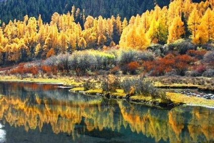 每年10月是稻城最美的季節(jié),初秋的稻城已經(jīng)是絢麗多彩的,大片大片的高原草甸逐漸變?yōu)辄S綠色,環(huán)抱高原海子的水草也由養(yǎng)眼的綠色向迷人的金色過渡。