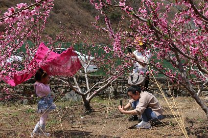 這個(gè)時(shí)節(jié),著名的賞花之地當(dāng)屬瀘定縣冷磧鎮(zhèn)杵坭的桃花谷。從瀘定縣城出發(fā),沿著大渡河右岸一路往下,行約20分鐘就能看到美麗的田野景色。只見,山頭上,田野間,或是房前屋后,統(tǒng)統(tǒng)換上了美麗誘人的春裝。放眼望去,李花、桃花、油菜花競(jìng)相綻放,爭(zhēng)奇斗艷。這里,桃花尤其繁盛,沿著山谷錯(cuò)落有致、次第盛開,讓人目不暇接,用一步一景來形容也一點(diǎn)不為過。