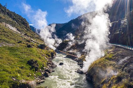 景區(qū)內(nèi)不僅有豐富的動植物群落,還有四川省十大地質(zhì)公園之一的地坑溫泉群,有眾多的氣孔、沸泉、脈動噴泉、冒氣地面、地面溫泉等,有的水溫高達(dá)60℃以上,該景區(qū)還分布有我國西藏以東僅有的間隙溫泉,非常罕見,是溫泉沐浴及觀賞噴泉景觀的最佳地。