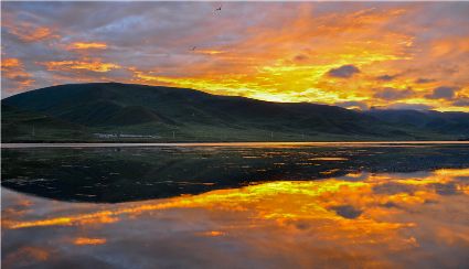 石渠蒙沙湖朝霞。