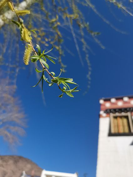 三月春潮翻涌,和暢春風(fēng)吹出“香巴拉”春日序曲。走進(jìn)鄉(xiāng)城縣青德鎮(zhèn)仲德村,“睡醒”的青稞小麥簇?fù)碓谔镩g地頭不住地冒頭吐綠,婀娜的柳樹(shù)枝條在陣陣拂過(guò)的惠風(fēng)中跳起了熱情的桑巴舞,不遠(yuǎn)處櫻桃花競(jìng)相綻放、淡粉爭(zhēng)妍,桃花、白楊也不甘于后,抽芽的、含苞待放的、迎春綻放的,好不熱鬧……山河將春風(fēng)釀成千言萬(wàn)語(yǔ)“問(wèn)候”了“香巴拉”每一個(gè)角落,定格了春的味道。