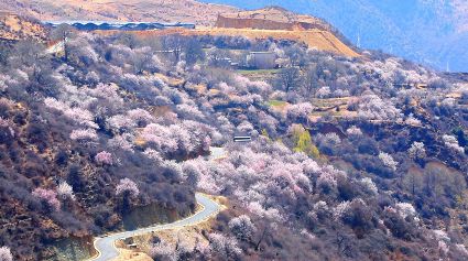在巴塘縣的中咱鎮(zhèn)波浪村,有一片隱于山野的“世外桃源”。四月的暖陽(yáng),拂過(guò)千畝桃林,朵朵桃花惹美了眼,點(diǎn)綴在江河堤岸,盛開(kāi)在春風(fēng)十里。漫山遍野,落英繽紛,仿佛走進(jìn)現(xiàn)實(shí)版的“青丘”!