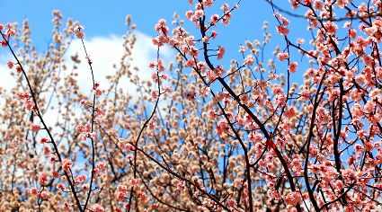千畝桃林灼灼盛放,桃果初露尖尖,引來(lái)花雨翩躚,枝丫顫顫仿佛一幅絕美畫(huà)卷令人陶醉。