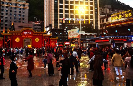 流光溢彩的不僅僅是夜的迷醉,閉上眼你也會(huì)聽到情歌的婉轉(zhuǎn)映山映水。紅袖翩翩起舞,踢踏舞步高昂,豪放的激情足以讓過(guò)往的游客挪不動(dòng)腳步。