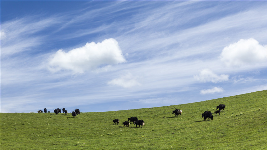 在康定,塔公草原草色青青,引得往來的游人駐足,藍天、白云、青草地,幾匹悠閑吃草的牛羊,一幅草原美景圖呈現在眼前,讓人流連。