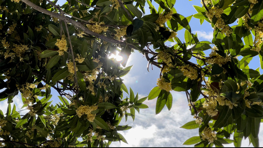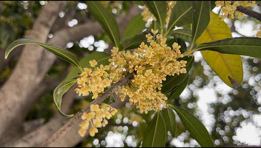 九月的鵬城巴塘,大街小巷叢桂怒放,點(diǎn)點(diǎn)桂花密密匝匝地簇生于葉腋或攢聚于枝頭,清香彌散。清涼的秋風(fēng)攜著醉人的花香,似乎就在不經(jīng)意間入了芳心,醉了滿城,迷了萬(wàn)千。