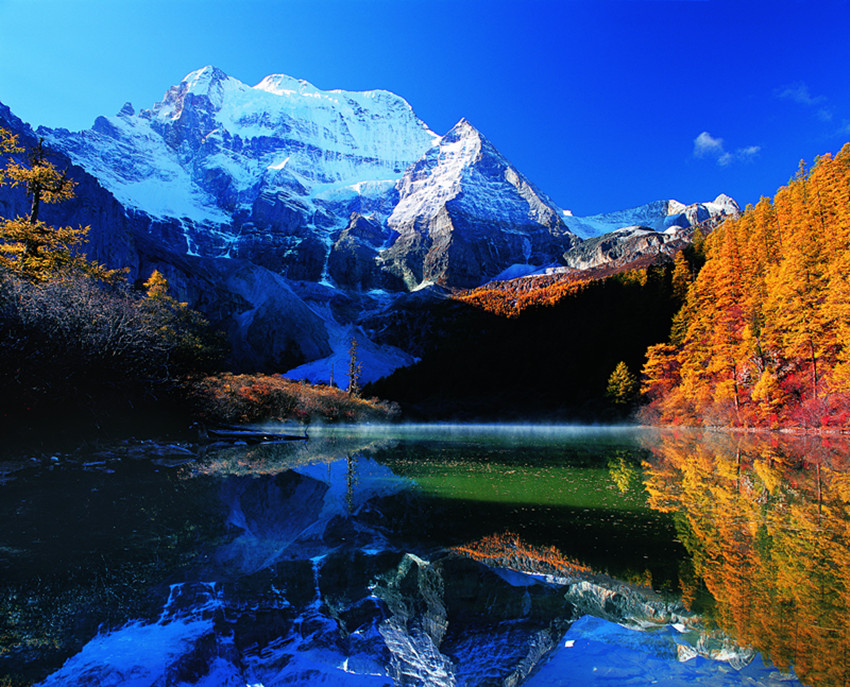在丹巴境內(nèi),一幢幢藏寨依著起伏的山勢迤儷而建,錯(cuò)落而有致,與周圍的彩林、溪流、雪峰,構(gòu)成了一幅幅田園牧歌式的優(yōu)美鄉(xiāng)村畫卷。在新都橋,黃澄澄、金燦燦的秋景醉了雙目也醉了心靈,光影錯(cuò)綜下,漫山遍野的金黃裹挾著山巒、牛羊和牧人,讓愜意和美麗瞬間定格。在稻城亞丁和紅草灘處,樺林、村落和湖水,詮釋著層林盡染中的鮮艷欲滴,一幀幀色彩豐富的畫面,令人一眼便傾心。