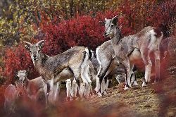 巖羊(學(xué)名:Pseudois nayaur),體型中等,形態(tài)介于野山羊與野綿羊之間。兩性具角,雄羊角粗大似牛角,但僅微向下后上方彎曲。以青草和各種灌叢枝葉為食。冬季啃食枯草。它們還常到固定的地點飲水,但到寒冷季節(jié)也可舔食冰雪。無固定獸徑和棲息場所。它們在懸崖峭壁只要有一腳之棱,便能攀登上去。一跳可達(dá)2、3米,若從高處向下更能縱身一躍10多米而不致摔傷。冬季發(fā)情交配,次年6、7月產(chǎn)仔,每年通常只產(chǎn)1仔。主要天敵是雪豹、豺、狼,以及禿鷲和金雕等大型猛禽。中國國家二級重點保護(hù)野生動物?! ?br />