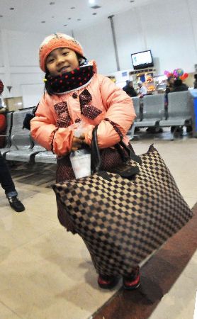 春運(yùn)期間,各地出行的人潮中總能看到隨父母一起踏上返鄉(xiāng)路的孩子們,他們無(wú)法體會(huì)到春運(yùn)一票難求、歸程摩肩接踵等帶給大人們的煩惱,掛在臉上的只是或興奮、或好奇的燦爛笑容。新華社發(fā)