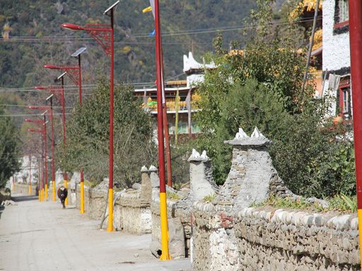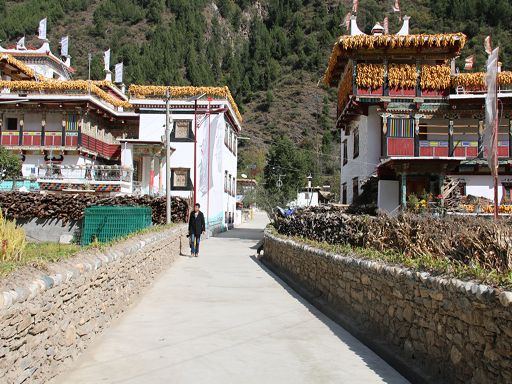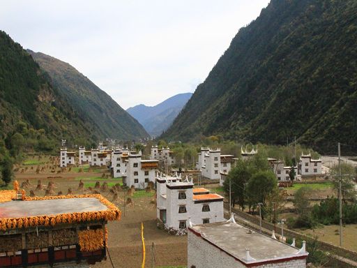 走進(jìn)冬日的丹巴縣革什扎鄉(xiāng)三道橋村,一幅如詩(shī)如畫(huà)的鄉(xiāng)村美景映入眼簾:一排排新穎別致而獨(dú)具嘉絨特色的白色藏房鑲嵌在彎彎的革什扎河旁,格外耀眼。一條條平直寬敞的硬化路像一根根潔白的哈達(dá)連接家家戶戶,寬敞平坦的公路上,轎車(chē)、農(nóng)用車(chē)、拖拉機(jī)穿梭來(lái)往,別具一格的村民活動(dòng)中心紅旗迎風(fēng)飄揚(yáng)。 這是如今的三道橋民族團(tuán)結(jié)新村。