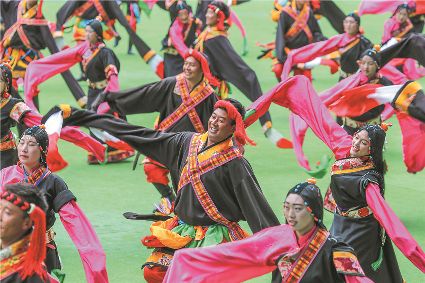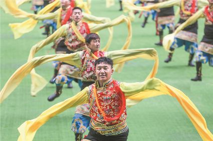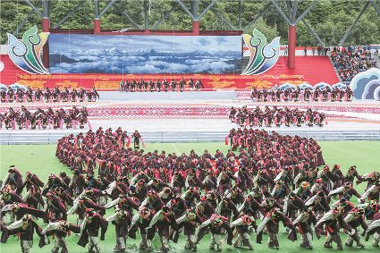 8月8日上午,康定北門體育場內(nèi)歌舞升平、彩旗飄揚(yáng),第九屆康巴藝術(shù)節(jié)開幕式文藝演出在此進(jìn)行最后一次帶妝彩排。本次彩排也讓我們對開幕式文藝演出充滿了期待。