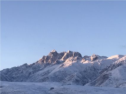 記得,離開甘孜縣城,前往滿金寺的那個(gè)早晨。同行的幾個(gè)人早早用過了早飯,趁著出發(fā)前僅有的一點(diǎn)時(shí)間,站在頂樓視野開闊的餐廳里,盼著太陽(yáng)沖出來,直接把陽(yáng)光大把大把地扔在大雪所覆蓋的一切事物上。天公作美,出發(fā)之前,太陽(yáng)慷慨了一回。于是,一陣噼噼啪啪的快門聲響了起來,應(yīng)和著寥寥餐廳里的某種空白。