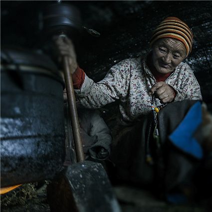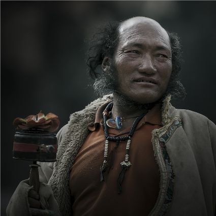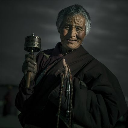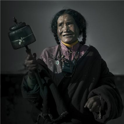 每當我手持相機時,對他們始終懷有一種敬畏,我捕捉到他們眼神里流露出虔誠??粗?jīng)筒上“甲多”的飛轉(zhuǎn),我陶醉了,醉在那轉(zhuǎn)經(jīng)筒的旋轉(zhuǎn)舞動,醉在那轉(zhuǎn)經(jīng)筒傳誦的故事,醉在那一張張手持轉(zhuǎn)經(jīng)筒的面孔,還有,還有因祈禱音符助推而從未停止的轉(zhuǎn)經(jīng)筒……