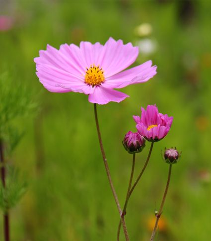 蔚藍色的天空,白云朵朵,草地上種類繁多的野花競相綻放,藍色、黃色、粉色、紅色、紫色、白色,貼著地面的、迎風舞動的、單枝亭亭玉立的、一叢叢如點點繁星的,單朵的、簇團的,一并在視野里搖曳;花開的聲音,靜待游客的聆聽……