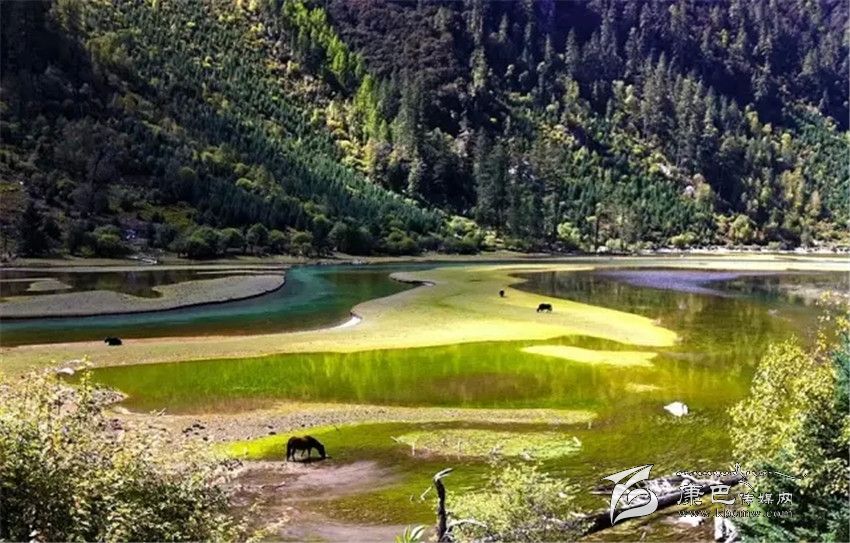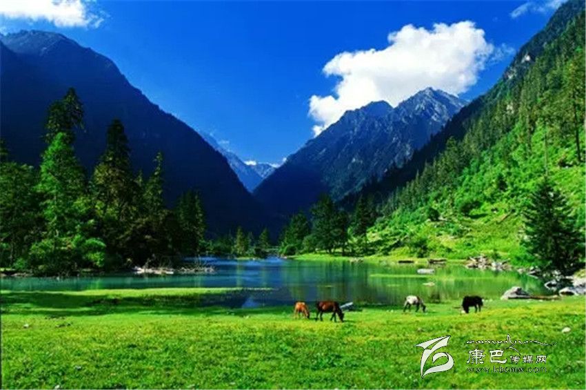 藍(lán)寶石般的高原湖泊、銀鏈般的溪流迂回盤旋,時(shí)常有馬兒在湖邊漫步。