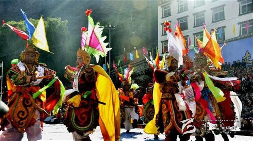 十七世紀(jì)時(shí),丹巴巴底大坪村阿洛、益西降稱等喇嘛去西藏學(xué)經(jīng),求學(xué)期間,征行九世班禪同意在日喀則扎什倫布寺學(xué)習(xí)藏戲,學(xué)了《呷拉翁布》(另名《卓瓦桑姆》)和《甲扎共龔》(譯為《文成公主》)二劇的唱腔、鼓鈸奏法、表演技巧,帶回巴底黃金寺,挑選寺中30余名僧徒成立黃金寺藏戲團(tuán)。此后,每年都在規(guī)定時(shí)間演出。丹巴中路藏戲,是中路寺廟喇嘛去西藏學(xué)經(jīng)時(shí)帶回的。