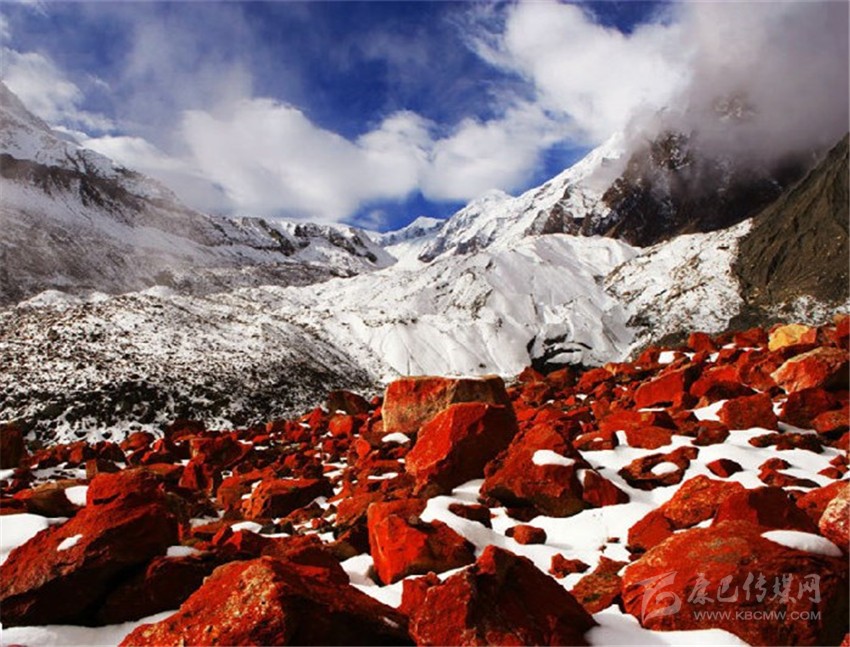 在積雪厚厚的遮掩之下,紅石灘永遠(yuǎn)是震撼人心的風(fēng)景。在綿延數(shù)十公里的河谷中,在茫茫的積雪下,紅石絲毫不甘寂寞,處處顯露出它們火一般的色彩來,在藍(lán)天的映襯下更加鮮艷奪目,這般壯美的景象讓毛能之恍如走進(jìn)另一個(gè)星球。