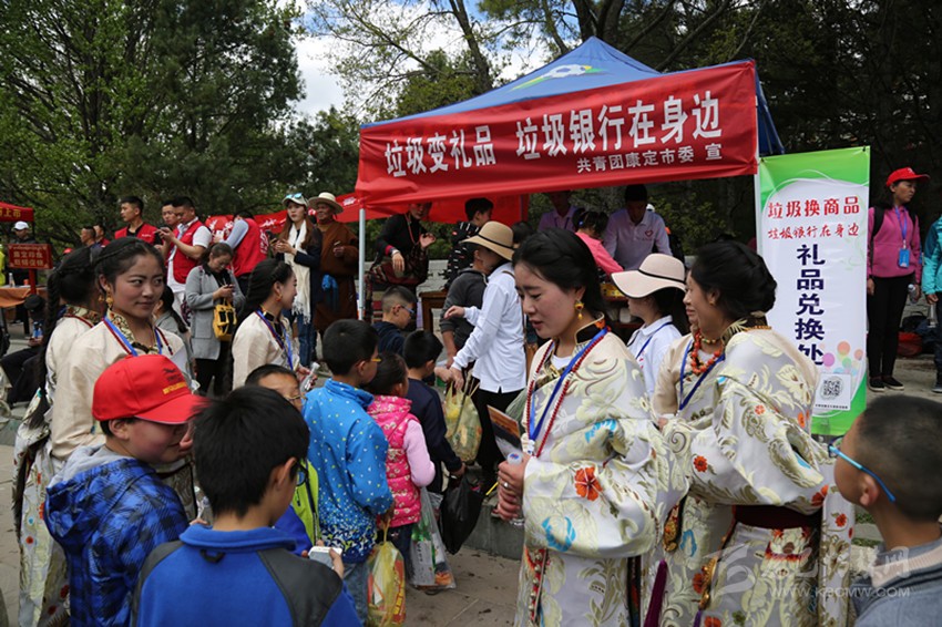曬佛儀式之后是第三屆“梵音”音樂會。音樂會在由州歌舞團演繹的面具舞《祈??刀ā分欣_序幕,13個表演節(jié)目中,既有透人心靈的梵音演唱和二胡演奏,又有激蕩人心的說唱表演和流行演唱,還有質(zhì)樸脫俗的原生態(tài)民歌演唱和群舞鍋莊,時尚和古樸、流行與傳統(tǒng)都在這里得到了集中展現(xiàn)。原生態(tài)歌曲《溜溜調(diào)》,原創(chuàng)歌曲《康定先生》《新編木雅鍋莊》等極具康定特色的節(jié)目更是將情歌故里的人之美、景之美、文化之美展現(xiàn)得淋漓盡致。將近90分鐘的表演高潮迭起、精彩紛呈,現(xiàn)場喝彩聲、歡呼聲此起彼伏,手機、單反、平板、航拍交相輝映,忙著錄視頻、拍照片、發(fā)微博、曬動態(tài)的人更是比比皆是在。除了精彩的表演,現(xiàn)場身著華麗盛裝的康巴美女也是一道靚麗的風景,引得無數(shù)中外游客爭相與之合影留戀。從四面八方趕來叫賣、推銷各種商品的店商和攤販也為此次活動增添了不少生氣。此外,康定團市委還特意在活動現(xiàn)場開展了“垃圾變禮品”活動,通過贈送禮品鼓勵大家清理垃圾,此次活動雖然人流巨大但場地衛(wèi)生異常良好。