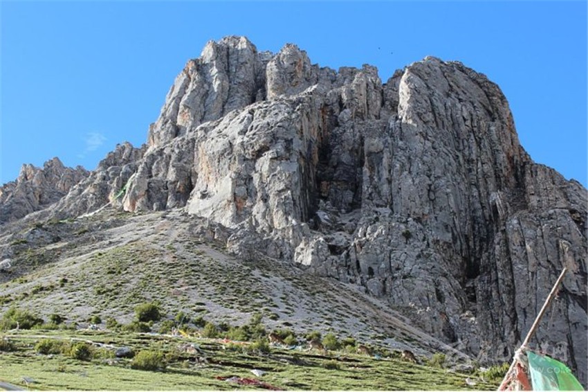 扎嘎神山又名為朗郎神山。神山山頂裸露,紅白相間的花崗石壘積形成數(shù)座山峰。主峰海拔4600米,如刀砌斧劈,險(xiǎn)峻雄偉,直指云霄。傳說中文殊、金剛手、觀世音、法王松贊干布祖孫三代、蓮花生大師等眾多神靈曾經(jīng)蒞臨此山,留有許多圣跡,故名揚(yáng)藏區(qū)。