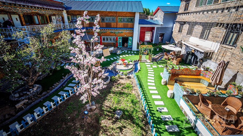 曾經(jīng)的倉庫變成了咖啡廳,關(guān)牛的地方變成了餐廳,土司房變成了溫泉套間,四合院變成了小橋流水,雖然有些改變,但留給客人的依舊是一個傳統(tǒng)藏式四合院?!拔ㄒ桓淖兊闹皇嵌嗔诵┬氯诵率聛韥硗?,在這里從你的全世界路過……”石雅琴借用張嘉佳的《從你的全世界路過》的話語,道出了她對“親愛的宅宅”的“定性”。
