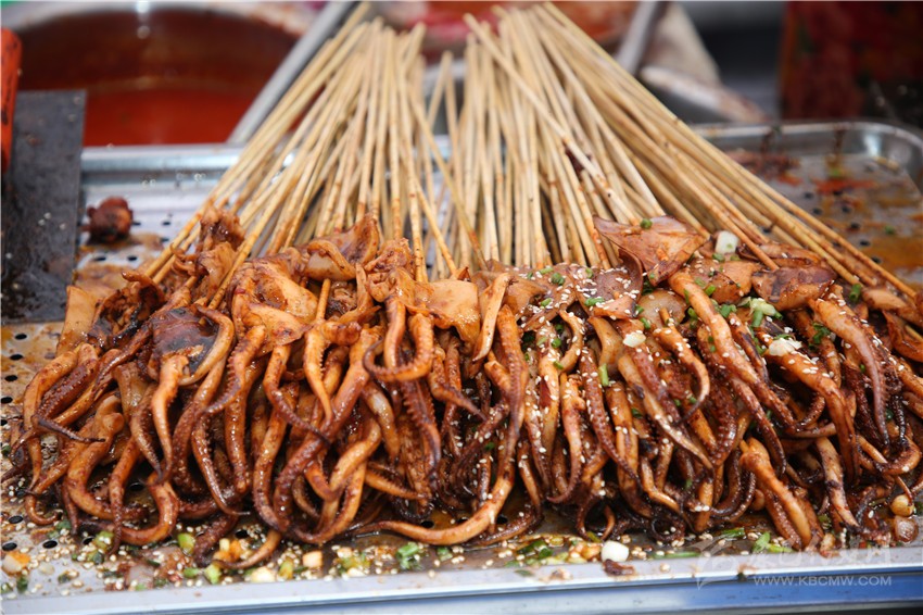 作為一個四川人,對于麻辣味的食物毫無抵抗力,在康定后街林立的商鋪中,記者一眼就相中了“深海魷魚花”這家店。看著泛著紅油的魷魚花靜靜地躺在紅椒和芹菜間,記者咽了咽口水,向老板買了一份兒。“真是純純的川味兒沒錯了,又麻又辣的?!庇浾邔习逭f。老板回答到:“魷魚花最講究的就是刀法了,要切得好看。雖然在顧客看來都差不多樣子,但是我每次都要經(jīng)過細細斟酌再一刀一刀的切,爭取多弄幾種樣式,現(xiàn)在我的常客們也會細細地考究我切的魷魚花了。以前我只賣烤魷魚,只是在家里偶爾會給我兒子做魷魚花,后來看我兒子喜歡吃,才開始慢慢地賣魷魚花,沒想到還是很受歡迎。這次美食節(jié),我發(fā)現(xiàn)沒有人做魷魚花,所以我就帶著我兒子喜歡的魷魚花來參加這次美食節(jié)了。”老板笑著跟記者說。