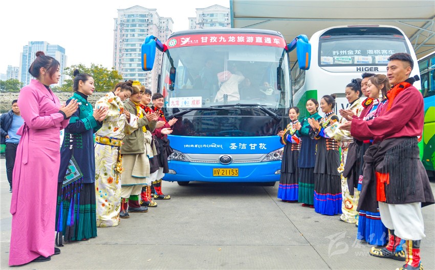 景區(qū)直通車授牌儀式和自駕游車隊(duì)授牌儀式也是本次推介會的亮點(diǎn)。兩項(xiàng)儀式旨在進(jìn)一步方便廣大游客到九龍旅游,并開啟成都直通九龍旅游及運(yùn)輸融合發(fā)展的歷史征程。現(xiàn)場,貼有“穿越藏彝走廊,體驗(yàn)民俗風(fēng)情”和“甘孜九龍旅游直通車”車標(biāo)的汽車引得不少人注目,有的還當(dāng)即向工作人員咨詢票價、路線。