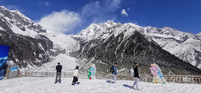 “前天從網(wǎng)上看到海螺溝景區(qū)即將開放的信息,別提多帶勁兒了。這次疫情發(fā)生就一直在家呆著,悶太久了,就想著疫情可控可防的時候,一定要來川西走走,剛好海螺溝離成都車程近,網(wǎng)絡(luò)風(fēng)評也是有口皆碑的。”遠(yuǎn)道而來的寧波游客吳先生目之所及盡是玉樹瓊枝、銀裝素裹的雪原冰川風(fēng)光,激動不已地說:“透透氣、玩玩雪、泡泡湯,回歸自然的感覺真太好了!”