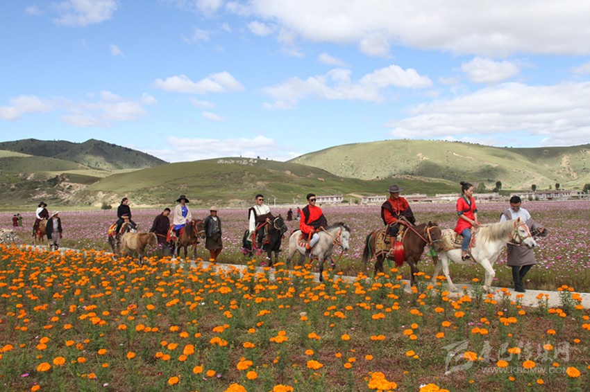 過去的漢戈村曾經(jīng)是貧困村,2016年,當?shù)乩脟彝度氲闹攸c生態(tài)功能區(qū)轉(zhuǎn)移致富資金1100萬元,打造了花海景觀,解決村民就業(yè)1200余人次,鼓勵村民依托國道227線穿村而過的交通優(yōu)勢,借助花海發(fā)展帳篷民宿,騎馬、射箭等具有藏族特色的旅游產(chǎn)業(yè),每年吸引游客5萬余人,漢戈村人均增收2800多元。