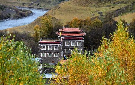 秋色與藍(lán)天相映 明珠與雪山成趣