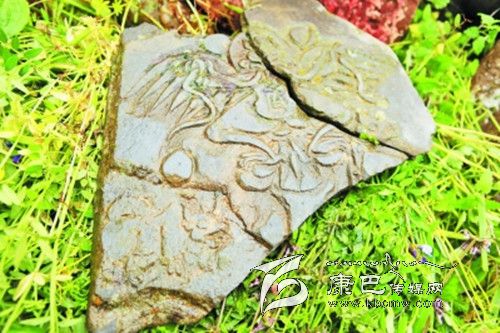 另外,今內(nèi)蒙古伊克昭盟伊金霍洛旗成吉思汗陵,供奉的“成吉思汗狩獵馬鞍”上,有二龍戲珠(“如意寶”由六顆海螺束成),其下面是大鵬金翅鳥護(hù)衛(wèi)牦牛圖形,這是典型的川西地區(qū)苯教圖案。2012年7月8日,調(diào)查小組一行在協(xié)德鄉(xiāng)古寺瑪尼堆中,也采集到大鵬金翅鳥護(hù)衛(wèi)牦牛的石刻(宋代)。9月28日在協(xié)德鄉(xiāng)雀兒村藏民擁措家看到一副馬鞍,其上也有類似的二龍戲珠、如意寶圖形。成吉思汗的“狩獵馬鞍”是成吉思汗到過川西藏區(qū)的最有力的證據(jù)之一。