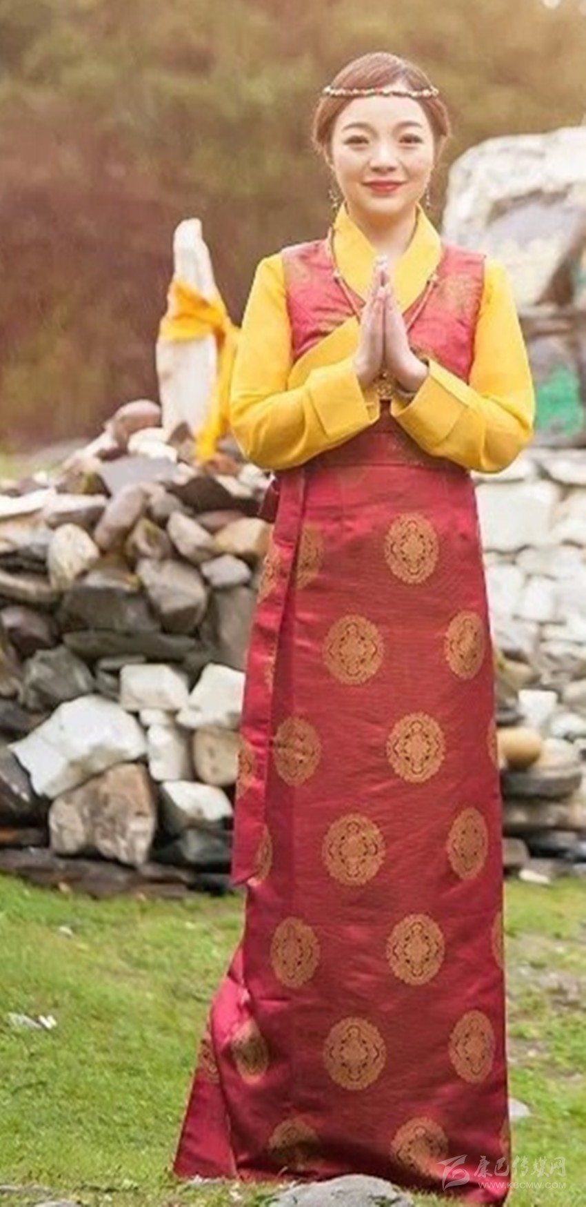 春天,小草發(fā)芽了、柳枝綠了……到處都是綠的主基調(diào),此款藏裝抓住了這一特色,整款由綠色統(tǒng)領(lǐng),設(shè)計(jì)簡約大方又充滿潮流味兒。有袖的西式藏裝沒有繁瑣復(fù)雜的著裝過程,穿在身上也是十分便捷輕松,同時(shí)還完美勾勒出了女性的曲線美;外搭做工精細(xì)的小馬甲,不僅時(shí)尚,還是天氣突然變幻時(shí)暖背暖身的一大貼心設(shè)計(jì)。