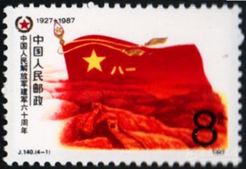 197781日原郵電部發(fā)行的《中國人民解放軍建軍50周年》紀(jì)念郵票,其中第4枚“雄師過大江”,圖案中一名沖在渡江隊(duì)伍前面的戰(zhàn)士高舉一面“八一”軍旗。198781日原郵電部發(fā)行的《中國人民解放軍建軍60周年》紀(jì)念郵票一套4枚。其中第1枚“軍魂”,郵票上一面鮮紅的“八一”軍旗迎風(fēng)飄揚(yáng),旗下是蜿蜒的萬里長城,代表了中國人民解放軍是保衛(wèi)祖國和人民的“鋼鐵長城”。199581日,原郵電部試發(fā)行一套“義務(wù)兵專用”郵票一套1枚,票名為“神圣的使命”,圖案以紅光四射的“八一”軍旗為背景,以現(xiàn)代化的飛機(jī)、坦克、火箭和象征和平的白鴿為襯托,畫面是威武的陸??杖?,顯示我軍鋼鐵長城般攻無不克、戰(zhàn)無不勝的精神風(fēng)貌。