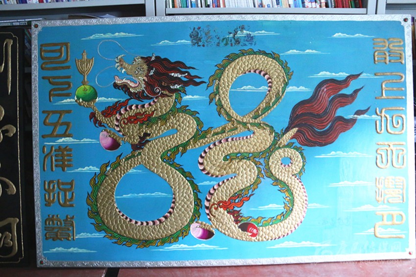 走進(jìn)王長(zhǎng)生的工作室,他保存有古董級(jí)的電影放映機(jī)、留聲機(jī)、電話、黑白電視機(jī)、照相器材和吉他、二胡、笛子等樂(lè)器應(yīng)有盡有,看到這些古老的“裝備”,記者仿佛走進(jìn)了那段塵封的歲月。2008年,王長(zhǎng)生創(chuàng)作的雕刻畫《昂首蒼穹》,走進(jìn)成都國(guó)際博覽中心,國(guó)家文化產(chǎn)業(yè)設(shè)計(jì)院的兩名專家評(píng)價(jià)說(shuō),作品的文化內(nèi)涵和藝術(shù)觀賞性都很高。王長(zhǎng)生解釋說(shuō),龍是中華民族的圖騰,龍中之龍?jiān)⒁鉃樯暇盘鞌堅(jiān)?,下五洋捉鱉,反映了中華民族的豪氣。