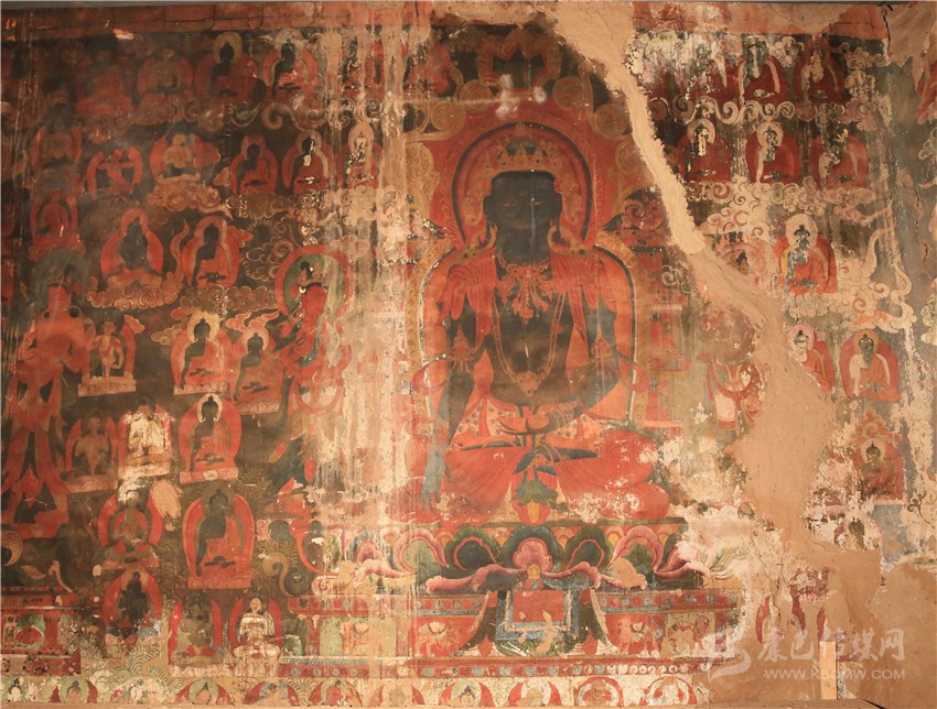 而吉祥天母殿內(nèi)的壁畫雖規(guī)模不及百柱大殿的壁畫大,但殿內(nèi)保存的壁畫歷史更悠久,畫風(fēng)更獨(dú)特,是一座取之不盡用之不竭的壁畫寶庫,是目前當(dāng)?shù)乇4娴谋诋嫯?dāng)中規(guī)模最大最古老的壁畫之一。