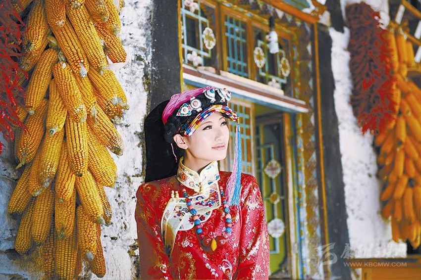 不知什么時候丹巴已被古碉?藏寨?美人谷這個名詞所取代。誠然,丹巴有歷經(jīng)蒼桑歲月仍傲然屹立于荒草萋萋之中的古碉,也有散落在田間地頭的白色藏房,它們用歲月遺留下來的符號無言地訴說著古老的過去。就在這美麗的土地上,綠水青山環(huán)繞中,充滿靈氣的古碉藏寨交相輝映,呈現(xiàn)出一幅天人合一的絕妙畫卷。也許是上天特別垂青于這塊土地吧!丹巴自古以來美女如云,一代代優(yōu)雅端莊,心靈手巧的姑娘,身著自已繡織的衣服,甩動如云的繡帕,舉手投足間自有一番清雅高華的氣質(zhì),盡顯東女國后裔風(fēng)范。