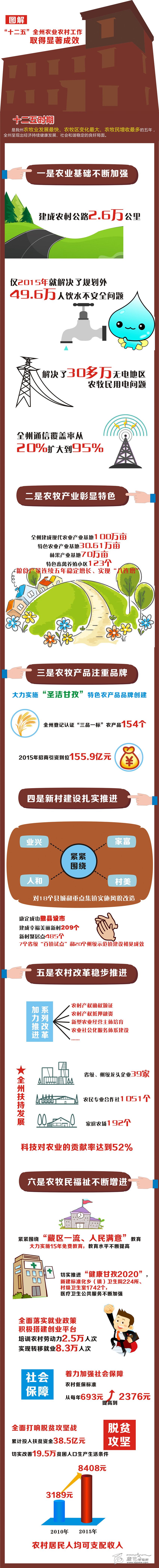 糧食產(chǎn)量連續(xù)五年穩(wěn)定增長(zhǎng)、實(shí)現(xiàn)“八連增”;農(nóng)村居民人均可支配收入從2010年的3189元增長(zhǎng)到2015年的8408元;建成幸福美麗新村209個(gè),新村聚居點(diǎn)485個(gè),7個(gè)省級(jí)“百鎮(zhèn)試點(diǎn)”和20個(gè)州級(jí)示范鎮(zhèn)建設(shè)初見(jiàn)成效;農(nóng)村產(chǎn)權(quán)確權(quán)頒證、農(nóng)村產(chǎn)權(quán)抵押融資、新型農(nóng)業(yè)經(jīng)營(yíng)主體培育、農(nóng)村社會(huì)化服務(wù)體系建設(shè)等系列改革加力推進(jìn)……