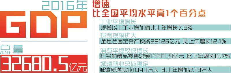 本網訊(記者 陳巖 梁現(xiàn)瑞 李龍?。?/span>1月22日,省政府新聞辦召開新聞發(fā)布會,發(fā)布2016年經濟數(shù)據(jù)。經國家統(tǒng)計局審定,2016年全省實現(xiàn)地區(qū)生產總值(GDP)32680.5億元,按可比價格計算比上年增長7.7%,增速比全國平均水平高1個百分點。全省經濟運行呈現(xiàn)總體穩(wěn)定、穩(wěn)中有進、穩(wěn)中有好的發(fā)展態(tài)勢,實現(xiàn)“十三五”良好開局。