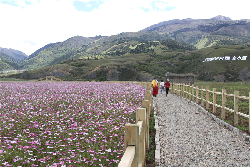 去年,在我州理塘縣濯桑鄉(xiāng)漢戈村, 當(dāng)?shù)貭?zhēng)取各方資金,利用旅游區(qū)位優(yōu)勢(shì)和老百姓群策群力,打造了占地800多畝、以波斯菊為主的漢戈花海,配套修建了賽馬場(chǎng)、游客中心、鍋莊廣場(chǎng)等。從去年國(guó)慶開始,漢戈花村開門迎客,鮮花留住了游客,也留住了收入。