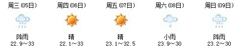 雖然明天太陽(yáng)有點(diǎn)兇,但7日、8日、9日三天陣雨及時(shí)出現(xiàn),日最高氣溫穩(wěn)定在30℃附近。