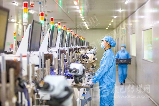 遂寧市經開區(qū)藍彩電子智能信息化車間,工人正在生產線開足馬力加緊生產。
