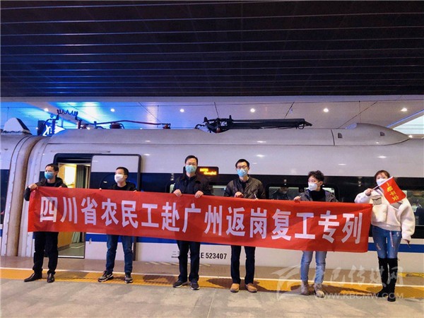 2月20日上午11:30,滿載著917名川籍農(nóng)民工的D4755次返崗專列,從成都東出發(fā)一路駛往廣州南。這是今年春節(jié)后我省首趟開往廣東省的農(nóng)民工返崗專列,也是我省與廣東在新冠病毒疫情期間勞務(wù)協(xié)作共識達(dá)成后,開行的首趟農(nóng)民工返崗專列。此次專列開行,極大滿足了疫情期間我省農(nóng)民工外出務(wù)工需求,同時也為廣東省企業(yè)復(fù)工復(fù)產(chǎn)提供了勞動力支持。此趟專列票務(wù)費用由廣東省人社廳承擔(dān),農(nóng)民工免費乘坐。