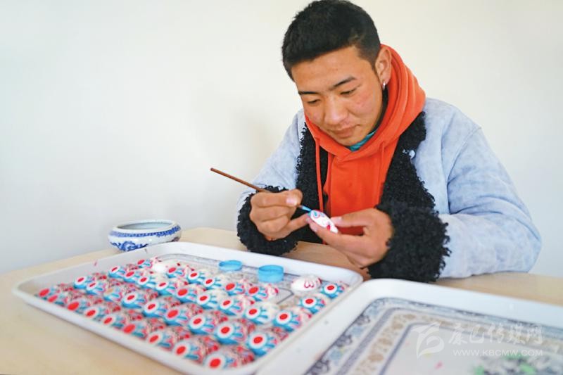 本著自主自愿的原則,教學(xué)班結(jié)束后,65名藏族青年主動(dòng)加入扶貧彩繪實(shí)訓(xùn)班,成為項(xiàng)目的第一批學(xué)員。“實(shí)訓(xùn)期間不需要交任何費(fèi)用,還包吃住。我對畫京劇臉譜很有興趣,我們第一個(gè)月學(xué)習(xí)繪畫基本功,第二個(gè)月開始,根據(jù)成品質(zhì)量,就可以計(jì)件得酬勞,學(xué)習(xí)期間我每月能掙500多元?!壁雠f。