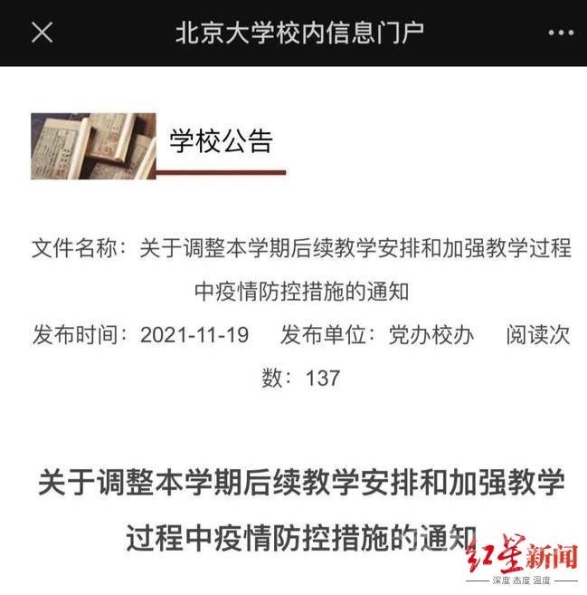 如北京大學(xué)日前發(fā)布通知,學(xué)生自2022年1月7日起放寒假;中國(guó)人民大學(xué)明確自2022年1月4日至9日期末考試,自2022年1月10日起,學(xué)生放寒假;北京物資學(xué)院稱,學(xué)生寒假自2022年1月9日開始。紅星新聞?dòng)浾咦⒁獾?,根?jù)校歷顯示,三所高校原計(jì)劃自2022年1月17日放寒假,放假時(shí)間均比原計(jì)劃提前一周左右。