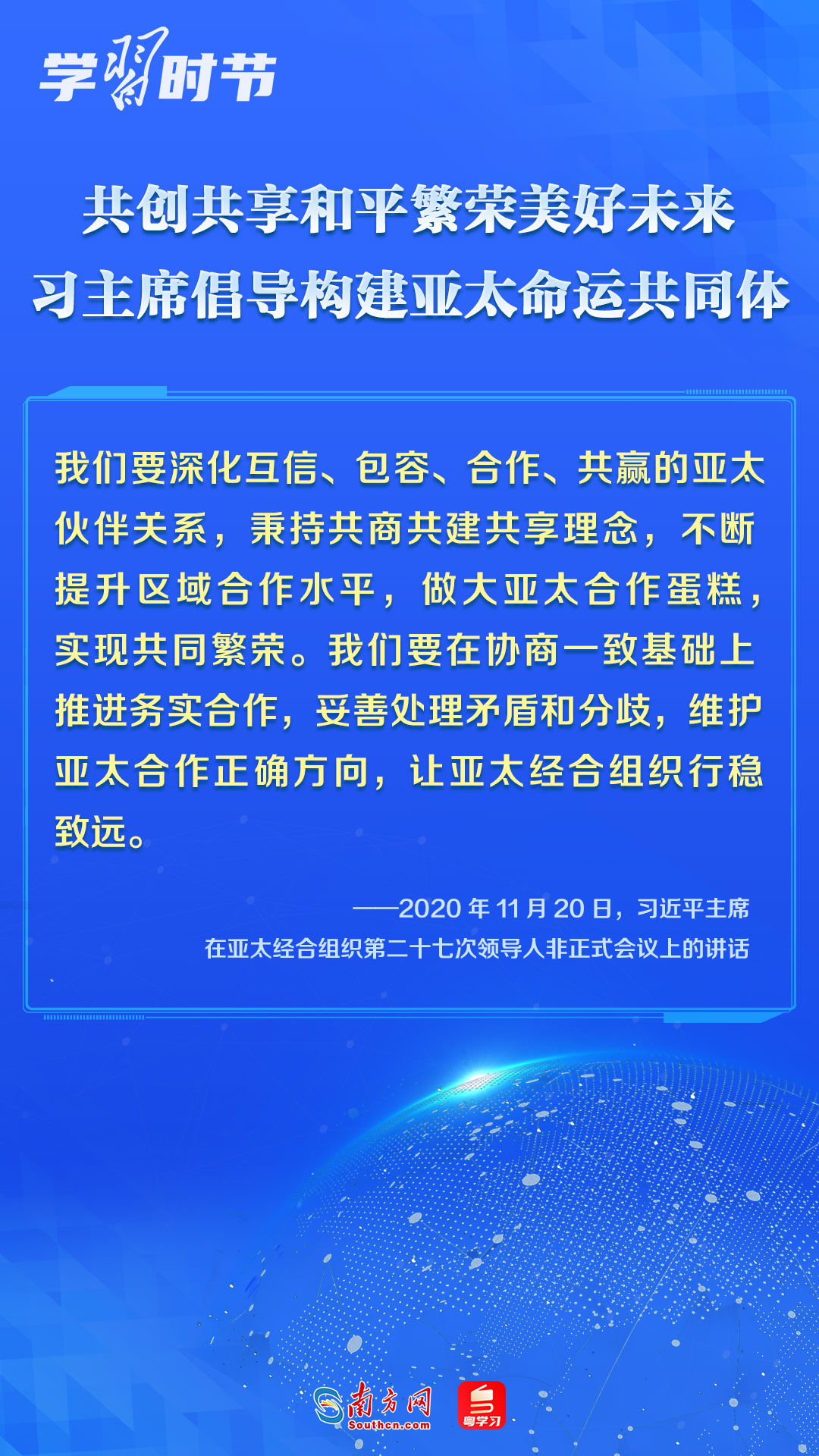 中國一直是APEC的積極參與者、貢獻(xiàn)者,為推動建設(shè)亞太大家庭發(fā)揮了重要作用。習(xí)近平主席多次出席APEC會議,以中國主張促進(jìn)亞太合作,以中國貢獻(xiàn)推動亞太發(fā)展,以中國智慧凝聚亞太共識,多次闡述構(gòu)建開放包容、創(chuàng)新增長、互聯(lián)互通、合作共贏的亞太命運(yùn)共同體的理念主張和重大意義,讓我們一同學(xué)習(xí)。