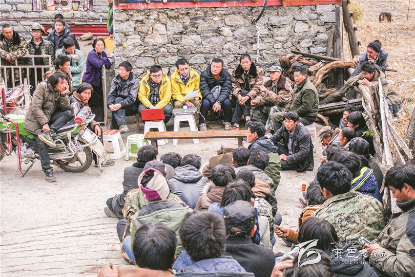 移民工作隊員在吉居孟底溝水電站庫區(qū)與群眾面對面開展實物指標(biāo)核實情況。