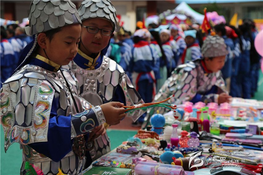 活動現(xiàn)場,各班各出奇招推銷商品,為了吸引顧客,有的班級設計了具有本班特色的口號、宣傳牌;有的班級學生還裝扮成“兵馬俑”現(xiàn)場表演吸引顧客;有的在展位前進行舞蹈、歌唱表演;還有的現(xiàn)場流動兜售……吸引了一批又一批顧客前來購買,吆喝聲、討價還價聲一浪高過一浪。