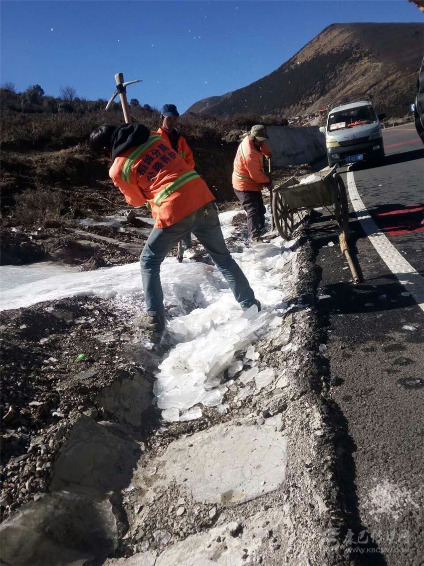 本網(wǎng)訊(孔邑 文/圖)2016年12月31日,稻城公路分局組織公路應(yīng)急搶險(xiǎn)隊(duì)鏟除道路冰凍積雪,消除安全隱患,確保干線公路安全暢通。