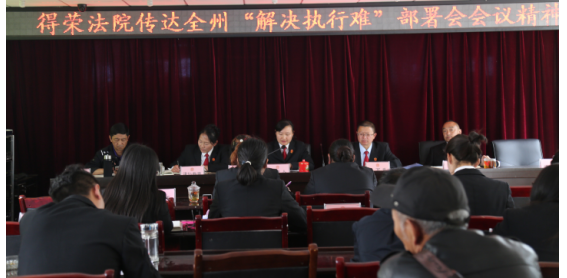 本網訊(張?。?/span>2018年4月13日,得榮縣人民法院全體干警集中學習貫徹于本月11日在甘孜州中級人民法院召開的全州法院決勝“用兩年時間基本解決執(zhí)行難”部署會精神。會議由院黨組書記、院長孫菊花同志主持。